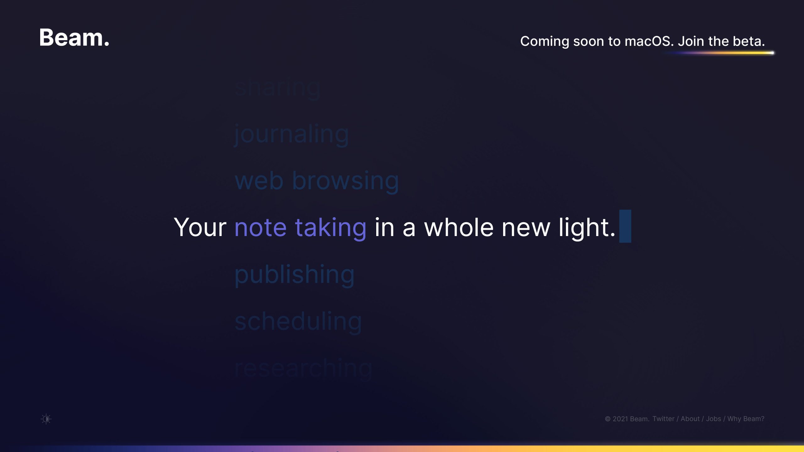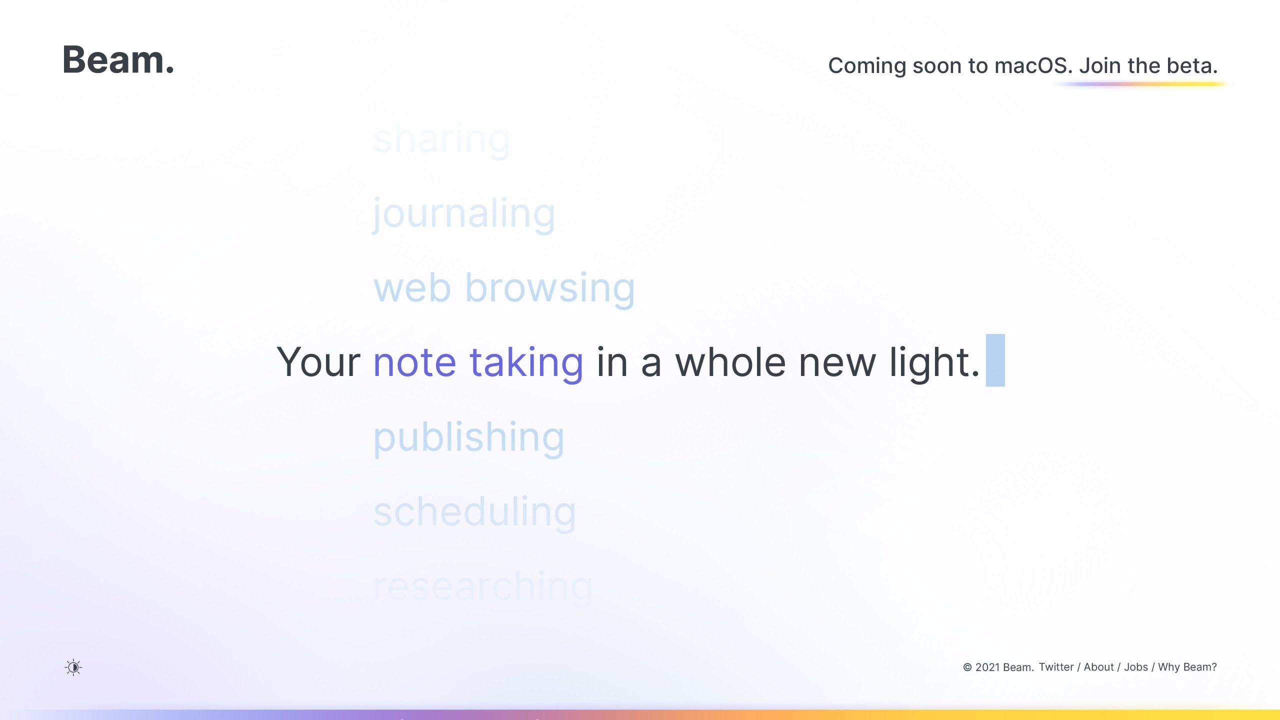 Beam’s website needed to mirror the aesthetic of their app, with the light and dark modes to match.